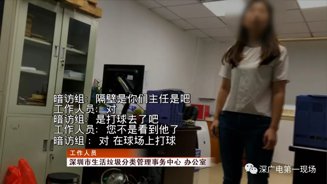 看到該單位工作作風(fēng)如此渙散,暗訪組成員繼續(xù)對(duì)另外一棟高層辦公樓展開暗訪檢查。下午4點(diǎn)03分,暗訪組成員剛進(jìn)入二樓——深圳市生活垃圾處理監(jiān)管中心辦公區(qū)域,就聽到有兩名男性工作人員招呼打掃衛(wèi)生的清潔人員幫忙整理辦公室,而這兩人背著包,徑直離開辦公大樓。