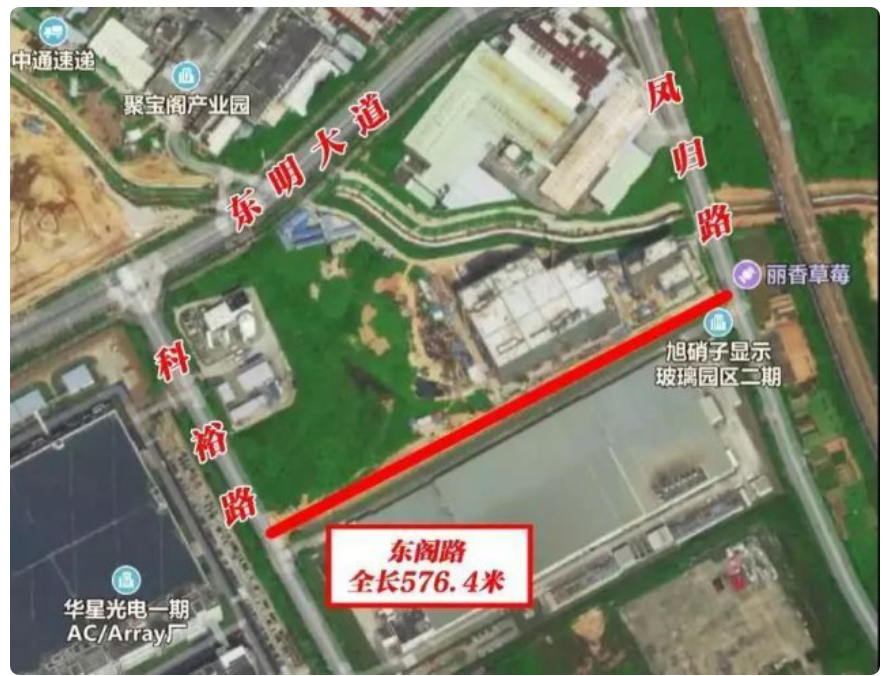 東閣路全長576.4米,道路紅線寬19米,是一條城市支路,機動車道為雙向兩車道。東閣路西接科裕路(支路),東接鳳歸路(支路),周邊有華星光電、歐菲光、旭硝子等企業(yè)。目前,東閣路已完成瀝青路面鋪設(shè)和標(biāo)線施工,驗收合格后就可以通車了。正式通車后將聯(lián)通周邊路網(wǎng),方便鳳歸路和科裕路周邊居民和企業(yè)出行交流,從鳳歸路到科裕路,不必兜個大圈子,只需直走576.4米就可以到達。