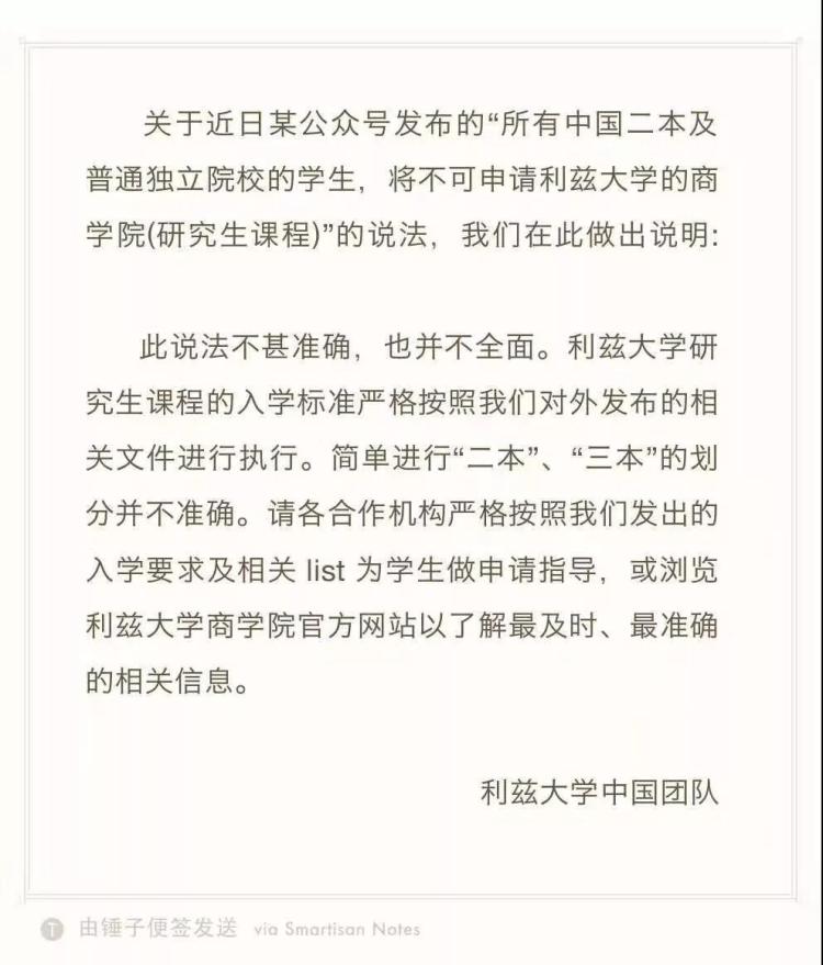 倫敦瑪麗女王大學(xué)駐中國辦事處負(fù)責(zé)人王穎向記者表示,文中提到的關(guān)于倫敦瑪麗女王大學(xué)的入學(xué)要求是錯(cuò)誤的?!皞惗噩旣惻醮髮W(xué)今年的錄取標(biāo)準(zhǔn)較以往沒有明顯變化,我們歡迎并接受來自中國非985、211大學(xué)的申請(qǐng)者?!?/p>