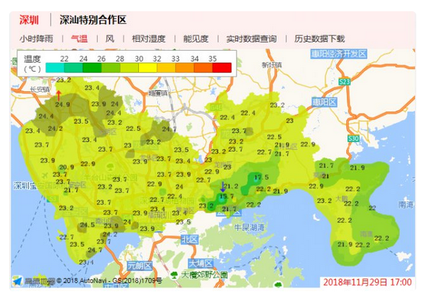 近期深圳天氣不穩(wěn)定,冷暖天氣交替切換頻道。預(yù)計(jì)未來(lái)一周天氣平穩(wěn),其中30日到12月2日多云,可見陽(yáng)光,早晚清涼,部分時(shí)間有輕霧,30日氣溫18 ℃ ~25 ℃;另外,12月3日 ~12月6日濕度上升,間中有零星小雨,氣溫小幅波動(dòng)。