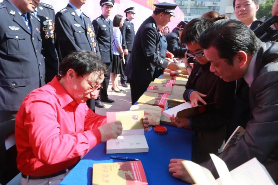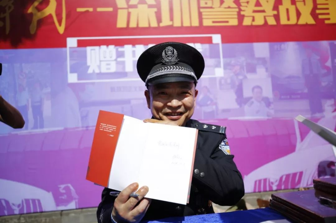 當(dāng)天上午,人民公安出版社副總編李國強(qiáng)、著名作家李迪與市公安局領(lǐng)導(dǎo)來到福田分局開放點現(xiàn)場為深圳公安“每日警星”代表簽名贈書。在贈書點,許多市民排起了長隊,領(lǐng)取《英雄時代——深圳警察故事》。