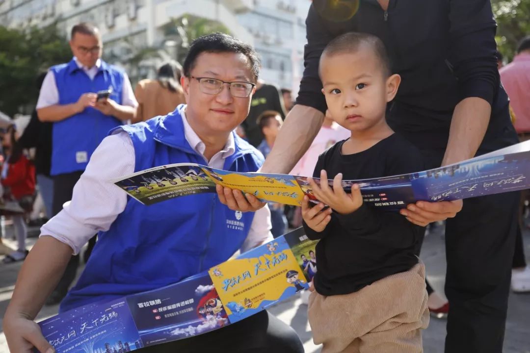 儀式后,深圳市副市長、公安局長徐文?,F(xiàn)場為來參觀活動的老人和小孩佩戴了“黃手環(huán)”,陽光的顏色,給人溫暖,讓人安心,傳遞了正能量。