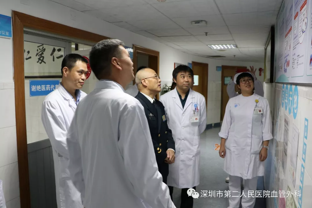 2018年11月30日,中國(guó)人民解放軍海軍軍醫(yī)大學(xué)附屬長(zhǎng)海醫(yī)院血管外科、心臟瓣膜疾病微創(chuàng)診治中心主任,上海市血管系統(tǒng)疾病臨床醫(yī)學(xué)中心主任,全軍血管外科研究所所長(zhǎng),中國(guó)醫(yī)師協(xié)會(huì)腔內(nèi)血管學(xué)分會(huì)(二級(jí))主任委員,國(guó)際知名血管外科專家景在平教授,來(lái)到深圳市第二人民醫(yī)院(深圳大學(xué)第一附屬醫(yī)院)(以下簡(jiǎn)稱“我院”)進(jìn)行座談、臨床查房、會(huì)診以及向全市住院醫(yī)師規(guī)培學(xué)員、教師與基地管理人員進(jìn)行專題學(xué)術(shù)講座。