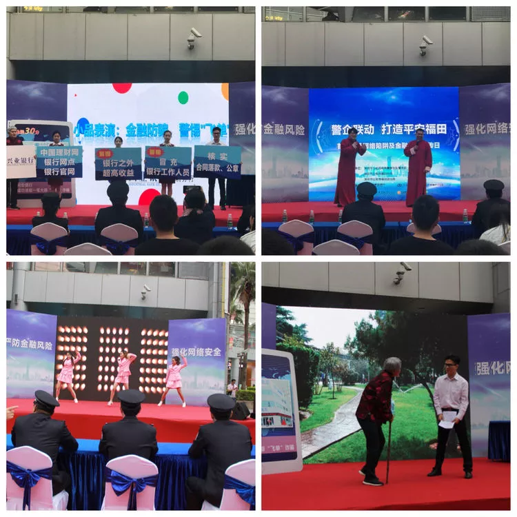 節(jié)目內(nèi)容豐富多彩?,F(xiàn)場通過"假冒公檢法詐騙風波"、"金融防騙、警惕'飛單’"、"網(wǎng)絡安全相聲表演"等小品、情景劇、歌舞、魔術(shù)等精彩節(jié)目,精彩的節(jié)目結(jié)合著反詐騙常識,讓群眾輕松又深刻地了解常見的網(wǎng)絡詐騙手段及金融風險。