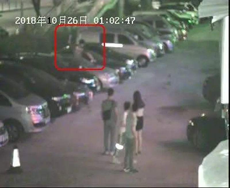 10月26日,事主伍先生發(fā)現停在下梅林廣場停車場的轎車引擎蓋被人為踩凹陷,而旁邊的幾輛轎車也有類似狀況。梅林派出所在接到報案后立即展開調查,民警通過調取監(jiān)控錄像發(fā)現一名男子,在凌晨時,先是爬上一輛小轎車,從一輛車踩跨到另一輛車,連續(xù)踩過4輛車后才跳下離開。