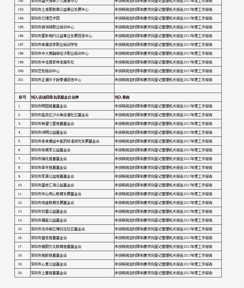列入社會組織活動異常名錄 來源:深圳市民政局