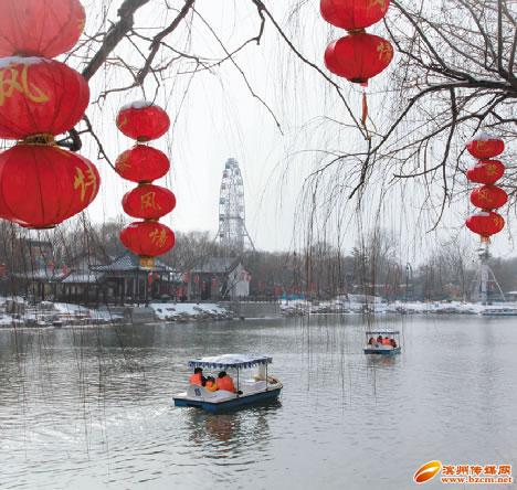 南海是濱州市“四環(huán)五?!惫こ痰闹匾M成部分之一,是“五?!敝械摹扒楹!?,突出“黃河風(fēng)情”的設(shè)計理念,更顯濱州“水城韻味”。站在黃河大堤南望母親河奔涌東去渤海灣,北望碧水映綠樹,人在畫中游,一派人水和諧、生態(tài)園林型新濱州的面貌展現(xiàn)在人們眼前。