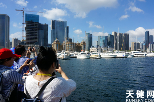 天健網(wǎng)2018年8月24日消息(記者 葛春家)8月24日上午,“風(fēng)從海上來,改革進行時”網(wǎng)絡(luò)主題采訪活動開啟了大連站的行程。媒體一行首先來到大連市東港商務(wù)區(qū)的國際游艇港,了解大連這座旅游城市海岸線建設(shè)的驕人成果,體驗海港游艇帶來的浪漫風(fēng)情。
