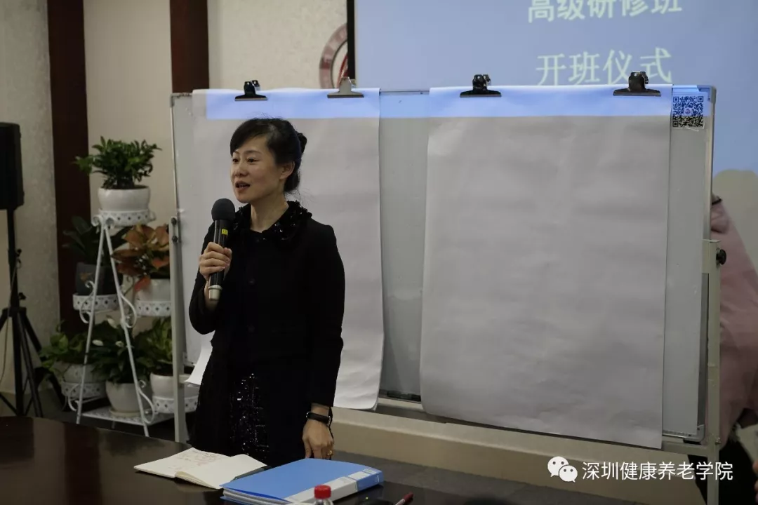 溫希東代表學校在開班儀式上致辭。他向全體學員表示了熱烈的歡迎,他向參加培訓的學員介紹了深圳職業(yè)技術(shù)學院的辦學情況,他表示,深圳健康養(yǎng)老學院是深圳職業(yè)技術(shù)學院創(chuàng)新社會服務模式,與深圳市民政局共同建設的一所專業(yè)養(yǎng)老人才學院。他希望,培訓班學員在這次定制化的高端培訓中加強交流,共同促進養(yǎng)老行業(yè)發(fā)展。