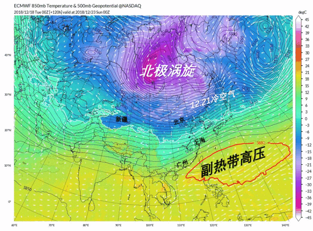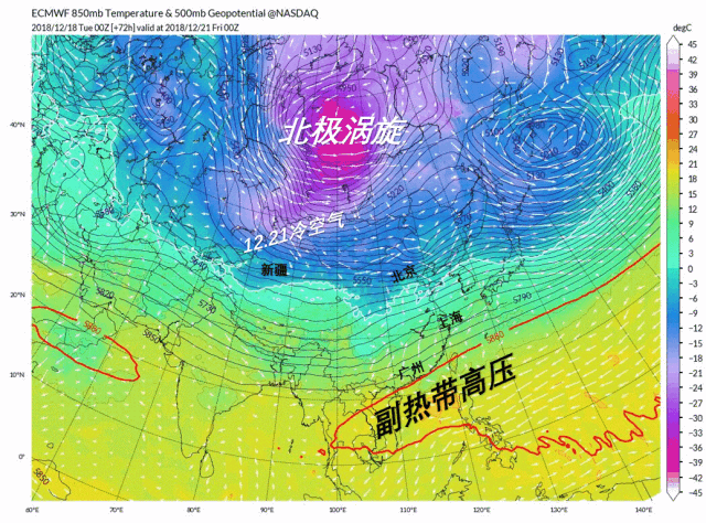 屆時(shí),西伯利亞和蒙古高原已被極其寒冷的空氣占據(jù)