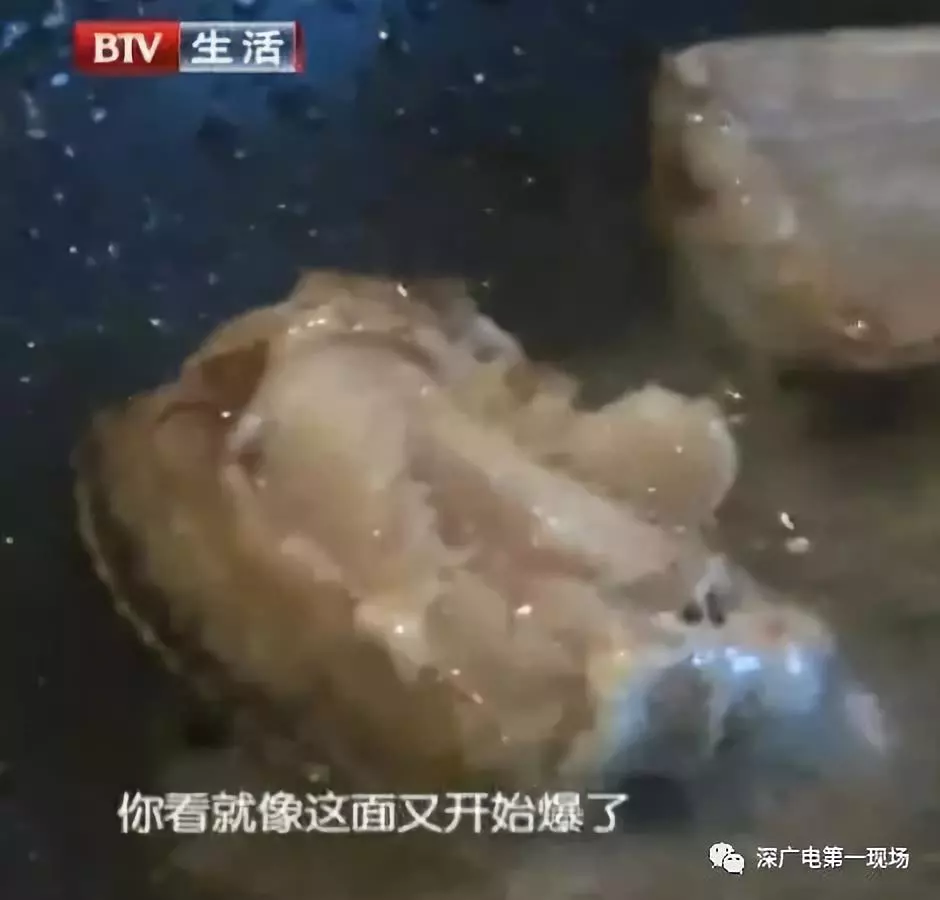 實驗結果顯示,未浸泡福爾馬林的帶魚,經(jīng)過高溫油炸一切正常,并未產(chǎn)生任何爆裂“開花”的情況。然而,浸泡了福爾馬林的帶魚,在下鍋后不久,就爆裂“開花”。