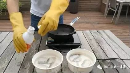 第三步,分別將正常帶魚和浸泡了福爾馬林的帶魚進行油炸。