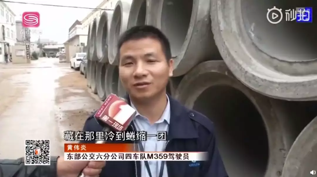 12月22日晚上十點多,東部公交六分公司四車隊的公交司機(jī)黃師傅剛剛下班,回家路上經(jīng)過坪山區(qū)金牌路時,聽到擺放在路邊的排污下水管道有聲音便上前查看。