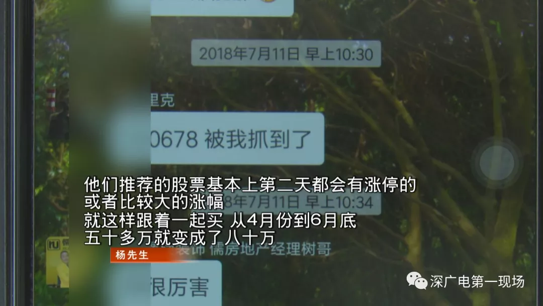 眼看著股票賬戶里的真金白銀有了大幅上漲,楊先生對群里的投資“老師”們更為信任,隨后不久,股票“大神”表示,即將有一個大項目,讓大家做好資金準備。