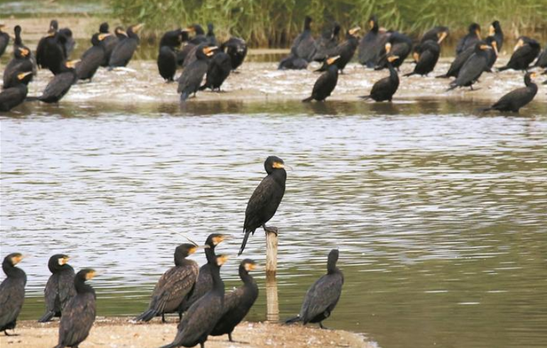 有黑臉琵鷺也有普通鸕鶿