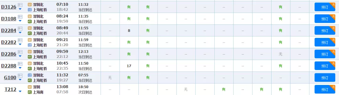此外,除夕至武漢、長沙、重慶、貴陽、懷化等地的高鐵也有余票,不過到站時間都在19時以后。