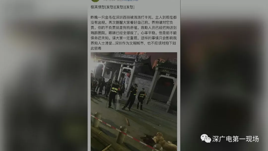 記者今天采訪時目擊者說,當(dāng)晚事發(fā)后狗主人一直不曾露面,不知道是不是流浪狗。但狗友群里有消息說,金毛犬當(dāng)時是栓了狗繩,沒帶口罩。