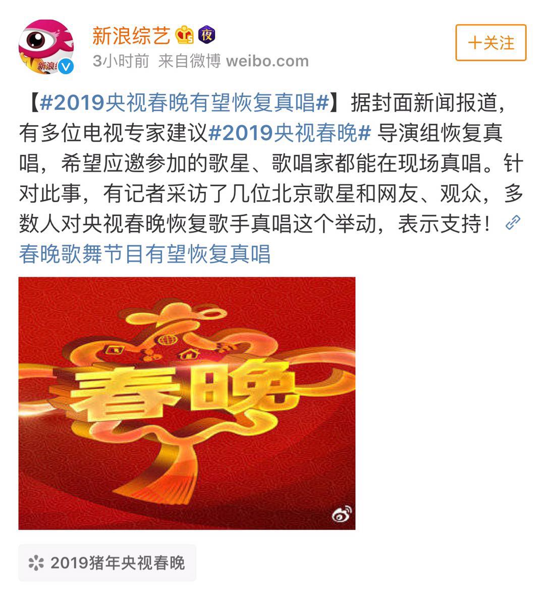 還 據(jù)說(shuō),2019央視春晚有望恢復(fù)真唱