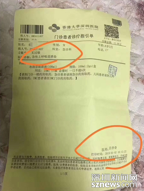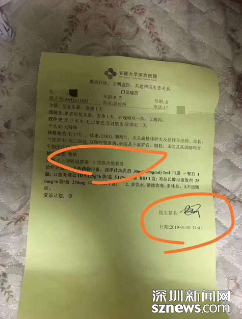 1月1日、2日,市民章先生的女兒因發(fā)燒在港大深圳醫(yī)院治療時(shí),被診斷為上呼吸道感染和胃腸功能紊亂。遵照醫(yī)囑吃完藥后,其女兒病情突然惡化,于1月3日死亡。