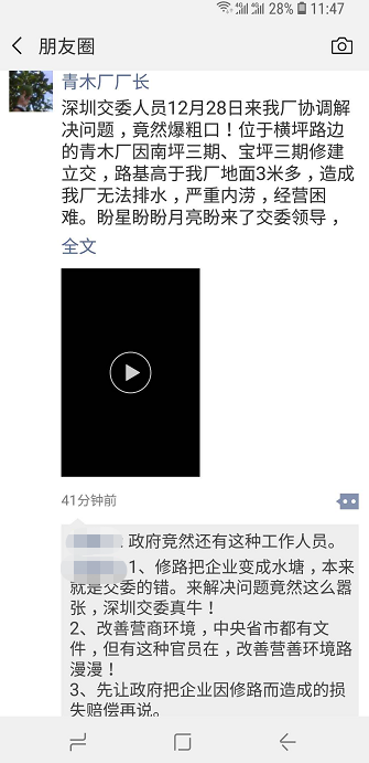 深圳交委吳姓工作人員到現(xiàn)場(chǎng)協(xié)調(diào)時(shí),爆粗口惹怒了工廠廠長(zhǎng)