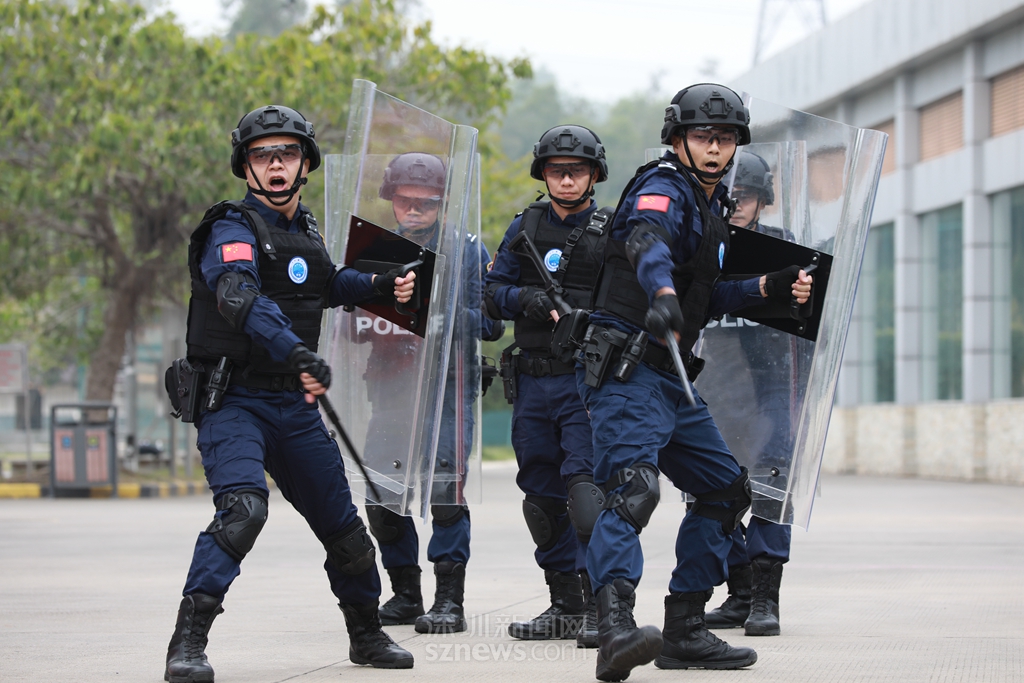 隊(duì)列會(huì)操步履整齊劃一,動(dòng)作規(guī)范有力,擒敵拳演練虎虎生威,遒勁剛猛,展現(xiàn)了深圳監(jiān)獄警察訓(xùn)練有素、團(tuán)結(jié)一致的團(tuán)隊(duì)風(fēng)采。特警隊(duì)員壓軸表演的警棍盾牌操,動(dòng)作迅速,合作默契,彰顯深圳監(jiān)獄警察過硬的專業(yè)本領(lǐng)和團(tuán)結(jié)協(xié)作的團(tuán)隊(duì)精神。值得一提的是,在9個(gè)隊(duì)列中,有1個(gè)隊(duì)列全部由女警組成,她們聲音洪亮,英姿颯爽,巾幗不讓須眉,是深圳監(jiān)獄警察團(tuán)隊(duì)中一道亮麗的風(fēng)景。