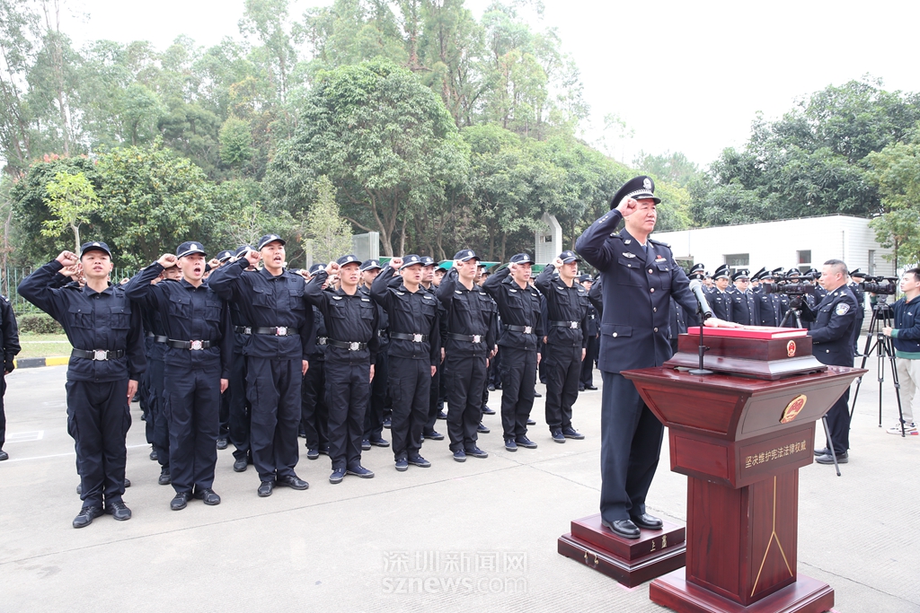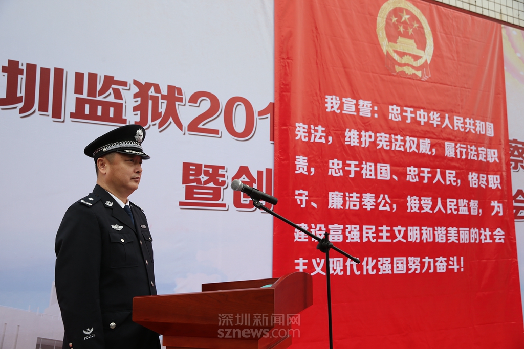 “我宣誓,忠于中華人民共和國憲法,維護(hù)憲法權(quán)威,履行法定職責(zé),忠于祖國,忠于人民,恪盡職守,廉潔奉公,接受人民監(jiān)督,為建設(shè)富強(qiáng)民主文明和諧美麗的社會(huì)主義現(xiàn)代化強(qiáng)國奮斗!”鏗鏘誓言,猶在耳畔?;顒?dòng)中,深圳監(jiān)獄監(jiān)獄長(zhǎng)蔡曙光,帶領(lǐng)70名新入職警察面對(duì)國徽、手撫憲法,許下了他們忠于祖國、忠于人民的錚錚誓言,這也是深圳監(jiān)獄對(duì)新入職警察開展集中的入職憲法宣誓。