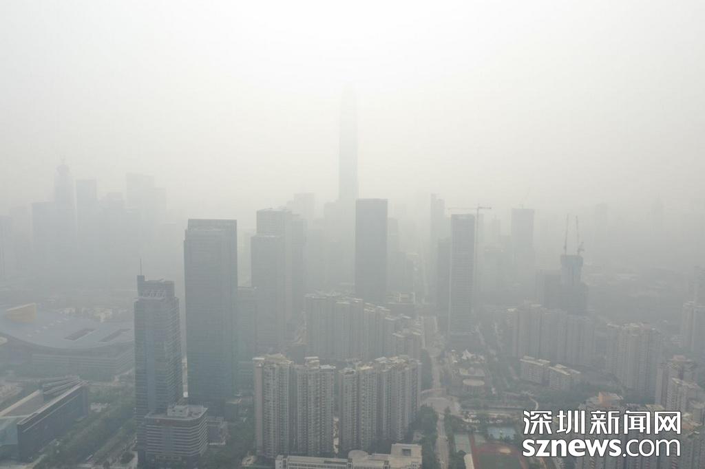 1月12日,霧霾襲深,深圳天氣君發(fā)布預(yù)警,今天最好不要在室外玩耍。記者中午用無人機(jī)航拍福田CBD區(qū)域,鏡頭下,市民中心和平安金融大廈兩個地標(biāo)幾乎無法辨別,新洲路上能見度很低,一切都仿佛浸在化不開的濃湯里。深圳天氣君在微博提醒:弱北風(fēng)影響下,不利于污染物擴(kuò)散,我市中西部地區(qū)下午會持續(xù)十面“霾”伏,灰霾黃色預(yù)警信號生效中,各位盡量不要長時間戶外活動。