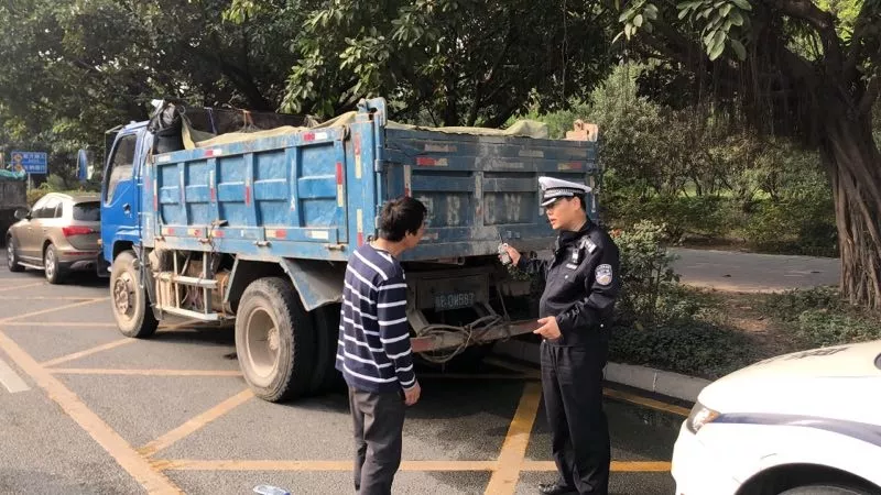 深圳交警在新沙路與寶安大道交匯處進(jìn)行巡查整治期間,執(zhí)勤人員攔?;汢EH887號牌重型自卸貨車,并對車輛和駕駛?cè)艘婪ㄟM(jìn)行檢查時,駕駛員夏某拒不出示證件,拒不配合執(zhí)法。