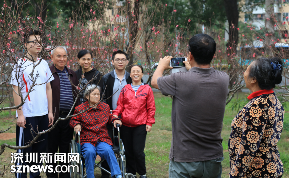 市民和伙伴們在桃花林打卡