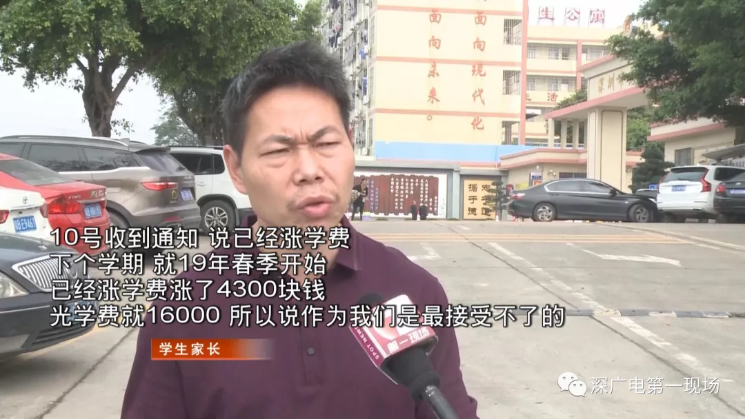 聚集在光明書院附近的家長有二三十人,他們都是學校高一、高二學生的家長。雖然入學時間相差一年,但家長們說,兩個年級的學生都是按照高中教育成本費一學期一萬兩千兩百元的標準在繳納學費。前不久,學校的一紙通知,引發(fā)了兩個年級學生家長的不滿。