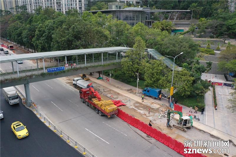 福田區(qū)僑香路人行道正在進(jìn)行施工