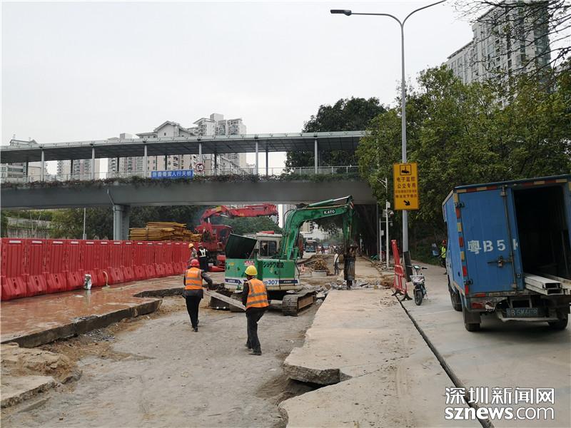 福田區(qū)僑鄉(xiāng)路道路施工現(xiàn)場(chǎng)航拍