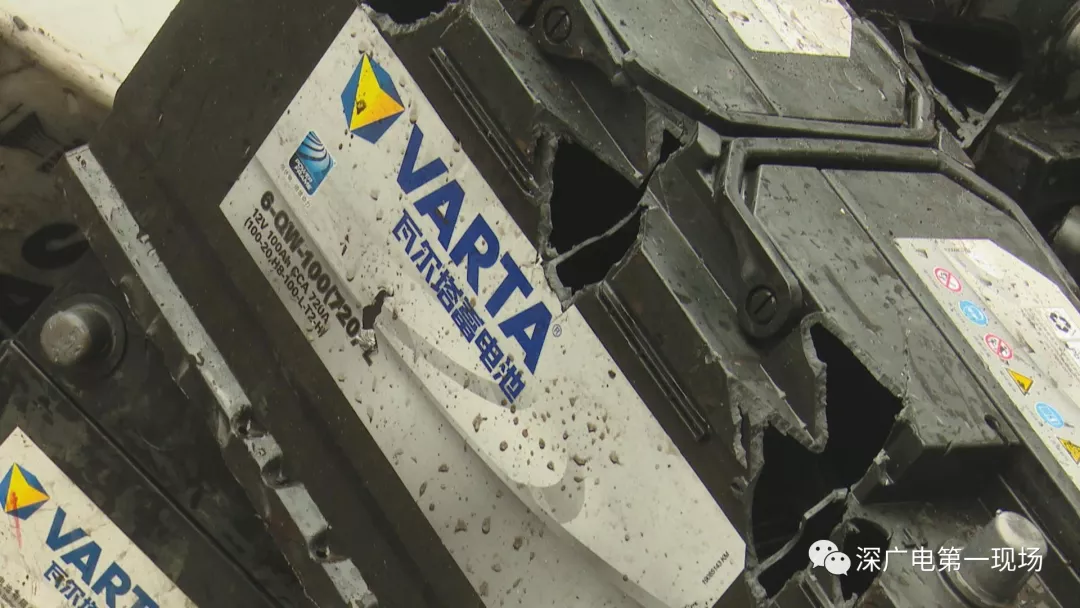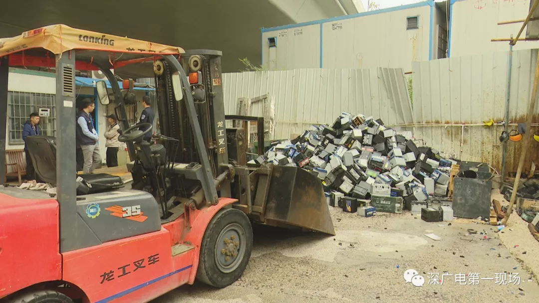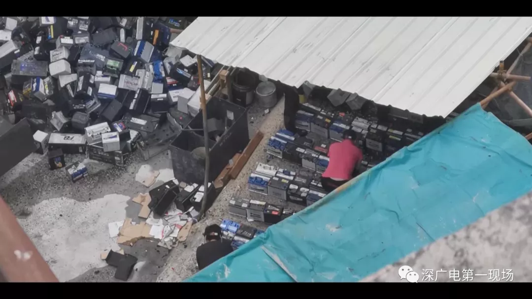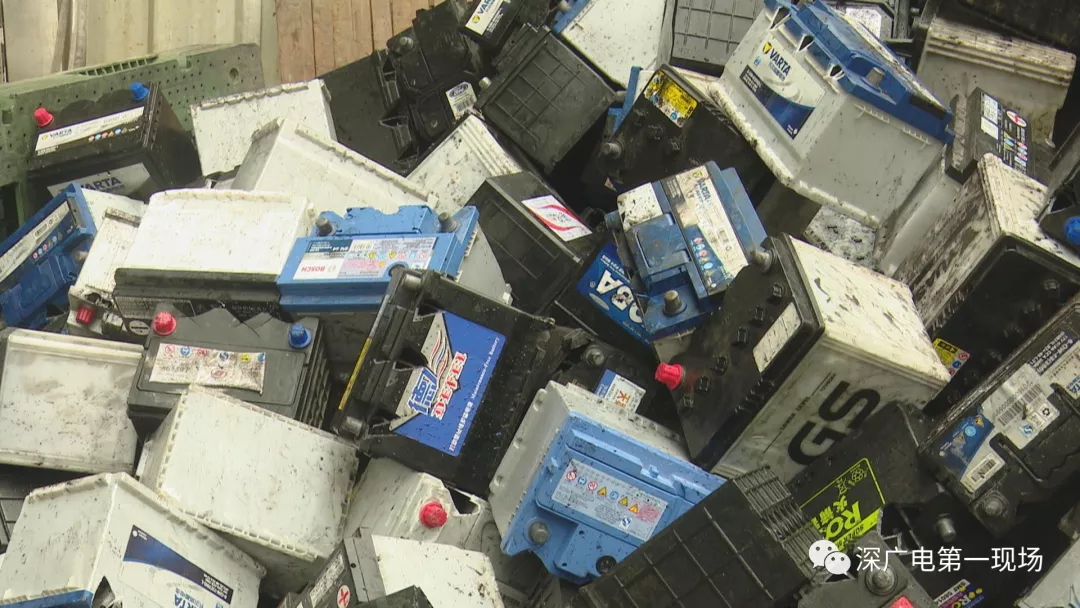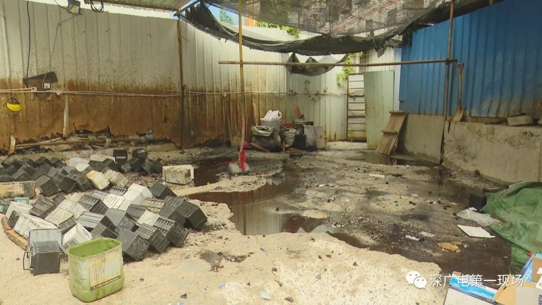 這是昨天下午2點多,記者跟隨南山區(qū)環(huán)保水務執(zhí)法人員,到現(xiàn)場查處時看到的情形。一處近500平米廢品回收場站內(nèi),廢舊電池堆積如山。