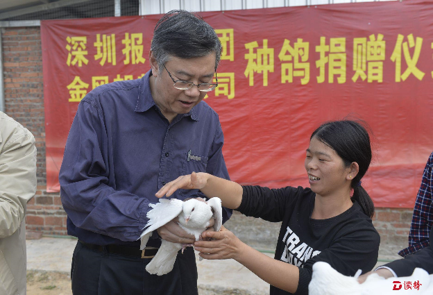根據(jù)報(bào)業(yè)集團(tuán)“因戶制宜一戶一策”“一個(gè)黨支部結(jié)對(duì)一戶貧困戶”的安排,鐘仿明選擇養(yǎng)鴿脫貧,兩年多來(lái),集團(tuán)金風(fēng)帆物業(yè)公司共計(jì)為他送來(lái)四批480對(duì)種鴿,還請(qǐng)來(lái)深圳光明農(nóng)場(chǎng)的技術(shù)員,對(duì)他進(jìn)行技術(shù)培訓(xùn)。“480對(duì)種鴿全部成活!”1月20日下午,看到親自來(lái)送種鴿的陳寅等報(bào)業(yè)集團(tuán)領(lǐng)導(dǎo),鐘仿明拿出一面錦旗,非常激動(dòng)地說(shuō):“感謝黨的好政策,感謝深圳報(bào)業(yè)集團(tuán)的真心幫扶!”