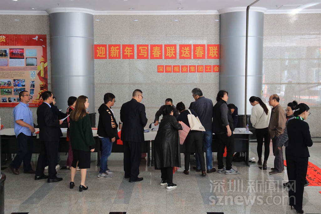 深圳新聞網(wǎng)2019年1月24日訊(記者 張玲實習生 關天宇)寫春聯(lián)送祝福是深圳報業(yè)集團每年的例牌環(huán)節(jié),今年也不例外。1月24日下午,深圳報業(yè)集團工會在商報大廈和深圳特區(qū)報業(yè)大廈同時開展主題為“迎新年寫春聯(lián)送春聯(lián)”的活動,平時用鋼筆電腦寫新聞的記者編輯,今天用傳統(tǒng)的筆墨紙硯寫下對新一年的祝福和期許。
