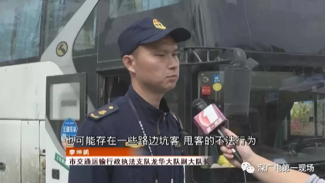 隨后,記者將大巴車非法營運(yùn)的情況反映給深圳交通運(yùn)輸行政執(zhí)法支隊(duì)龍華大隊(duì)。很快,執(zhí)法人員來到了現(xiàn)場。下午1點(diǎn)30分左右,20多名乘客上了一輛大巴后駛出了集合點(diǎn),執(zhí)法人員立即采取行動。
