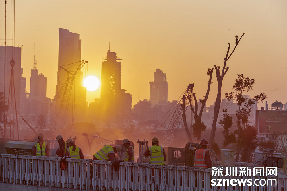 深圳新聞網(wǎng)2019年2月3日訊(記者 黃賢娟 趙穎致 黃婉婷 胡志方 林婉婷)與日漸冷清下來(lái)的街道商鋪不同,春節(jié)前夕的黃木崗立交仍是一片繁忙景象。這是2月2日傍晚,數(shù)百名身穿橙黃馬甲的工人正在忙著將立交橋切割分離。平板車(chē)、模塊車(chē)往來(lái)穿梭,將一塊塊拆卸下來(lái)的橋體陸續(xù)運(yùn)走。夕陽(yáng)西下,橙黃色工服反射出點(diǎn)點(diǎn)熒光,成為安靜的城市中獨(dú)特的點(diǎn)綴。
