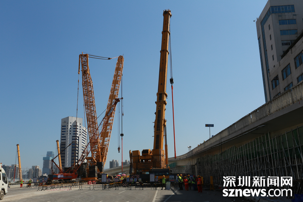 而正是為了達成20天拆除黃木崗立交橋的工程目標(biāo),將幾乎不可能的工程奇跡變?yōu)楝F(xiàn)實,黃木崗立交拆橋工程專門配備了專業(yè)而龐大的施工陣容。不僅招攬了一批經(jīng)驗豐富、技術(shù)嫻熟的建設(shè)人才,還大量引入SPMT模塊車、繩鋸切割工藝等國際先進技術(shù)和設(shè)備??偣?500余人參與項目施工,進駐900噸、750噸、600噸等起重機及模塊車、平板車等大型器械500余臺,組成了現(xiàn)場規(guī)模宏大的施工場面。
