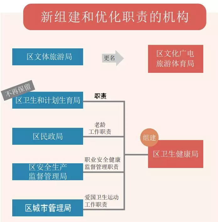 據(jù)了解,根據(jù)工作安排,區(qū)級機(jī)構(gòu)改革于3月底前基本完成。