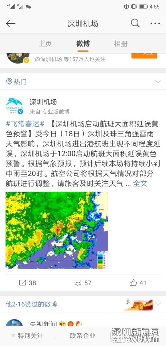 深圳機場微博發(fā)布航班延誤提醒
