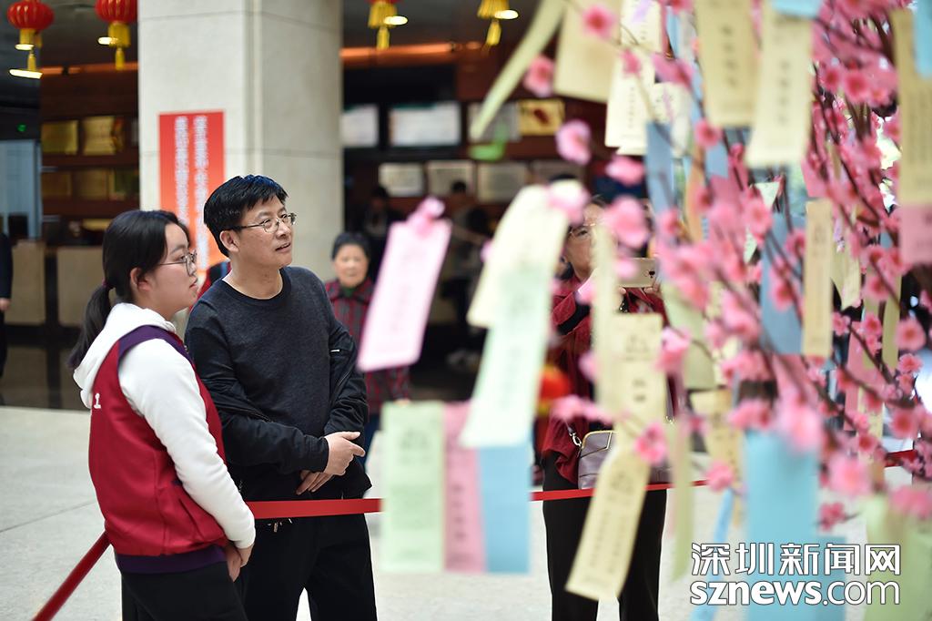現(xiàn)場(chǎng)的燈謎樹(shù)吸引不少市民駐足觀看猜燈謎