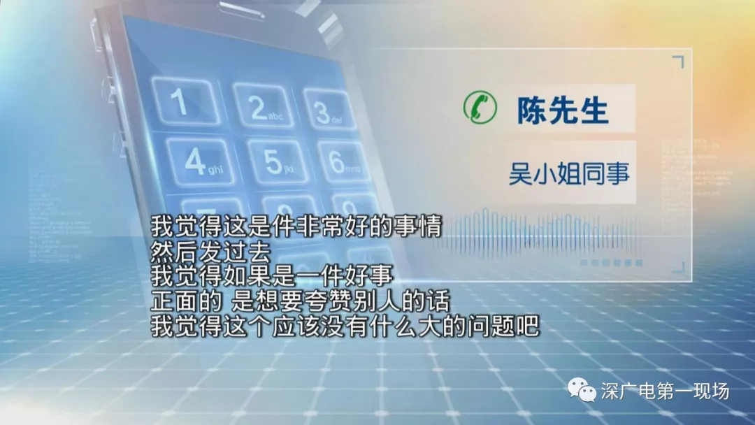 深廣電第一現(xiàn)場(chǎng)2019年2月19日訊 今年20多歲的吳小姐是深圳一家公司的員工。昨天晚上,吳小姐打開(kāi)了公司的微信工作群,發(fā)現(xiàn)她的同事陳先生在工作群,發(fā)布了吳小姐之前參加選美比賽的相關(guān)宣傳報(bào)道,和領(lǐng)獎(jiǎng)時(shí)候的照片,這讓吳小姐一下子驚呆了。