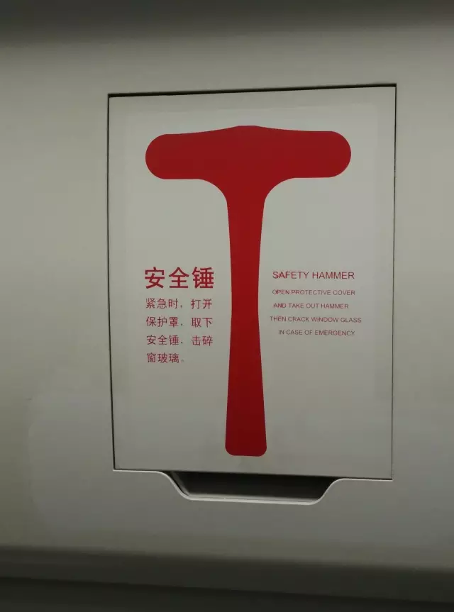 安全錘安裝于列車側(cè)頂上方的盒體內(nèi),每節(jié)車設(shè)有4個(gè)。當(dāng)列車發(fā)生緊急情況時(shí),乘客可打開保護(hù)罩取下安全錘,用錘子擊碎窗玻璃逃生。