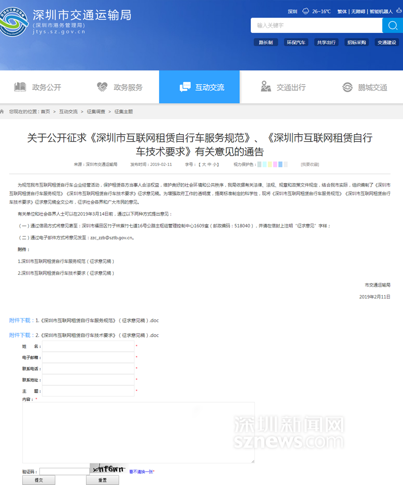 深圳新聞網(wǎng)2019年2月21日訊  (記者 吳英敏)共享單車要如何擺放才規(guī)范?停放單車車輛連續(xù)長度有沒有限制……近日,為規(guī)范單車運營,深圳市交通局已組織編制了深圳市互聯(lián)網(wǎng)租賃自行車服務(wù)規(guī)范》和《深圳市互聯(lián)網(wǎng)租賃自行車技術(shù)要求,現(xiàn)通過其官網(wǎng)公開征求社會各界意見?!兑?guī)范》對單車運營企業(yè)備案、退出、車輛投放、人員配置、運營管理等方面均做出了具體規(guī)定。