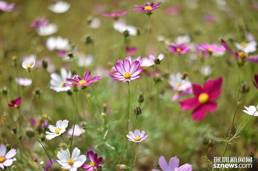成片的波斯菊融入春色之間