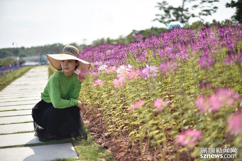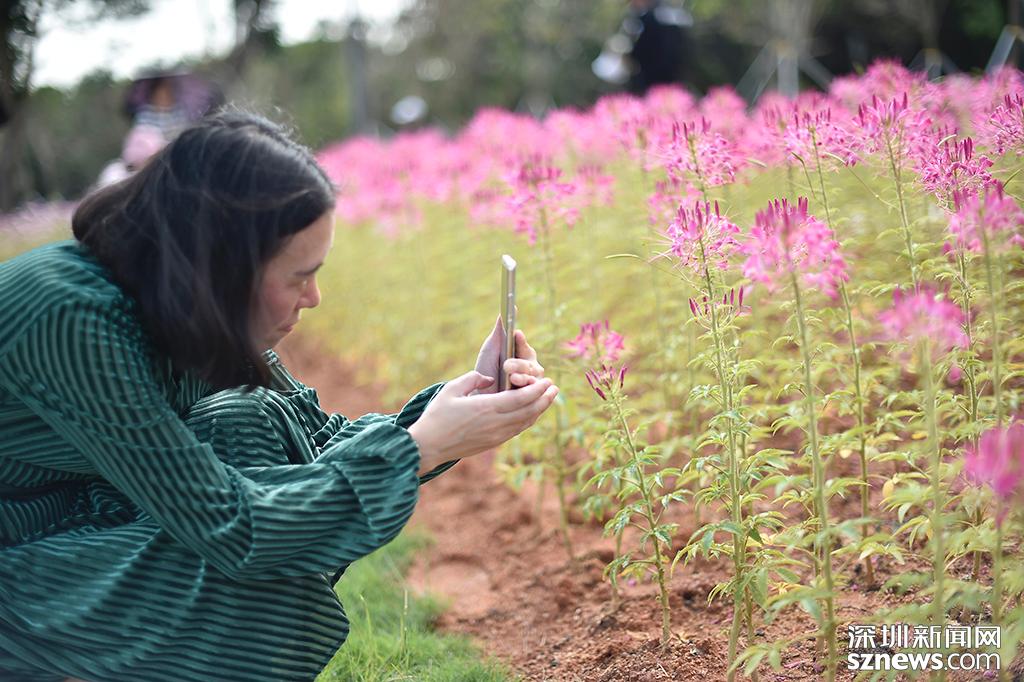 醉蝶花花海前,一位市民擺出“Pose”