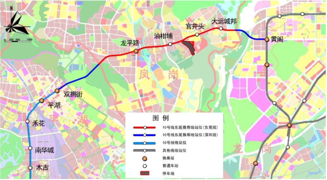 10號線東延是聯(lián)系平湖、東莞鳳崗及大運新城的普速線路,主要功能為加強龍崗中心城與平湖、坂雪崗的聯(lián)系、促進深莞一體化。東延線路由在建地鐵10號線雙擁街站后引出,出站后轉(zhuǎn)向東北方向,下穿鳳凰山國家礦山公園,之后進入東莞,東莞段內(nèi)沿龍平路敷設,在東北師大益田小學北側(cè)向東南下穿武深高速、鹽龍大道進入清林路,接至在建16號線黃閣站。線路全長約9.8km,設站5座,采用地下敷設方式。