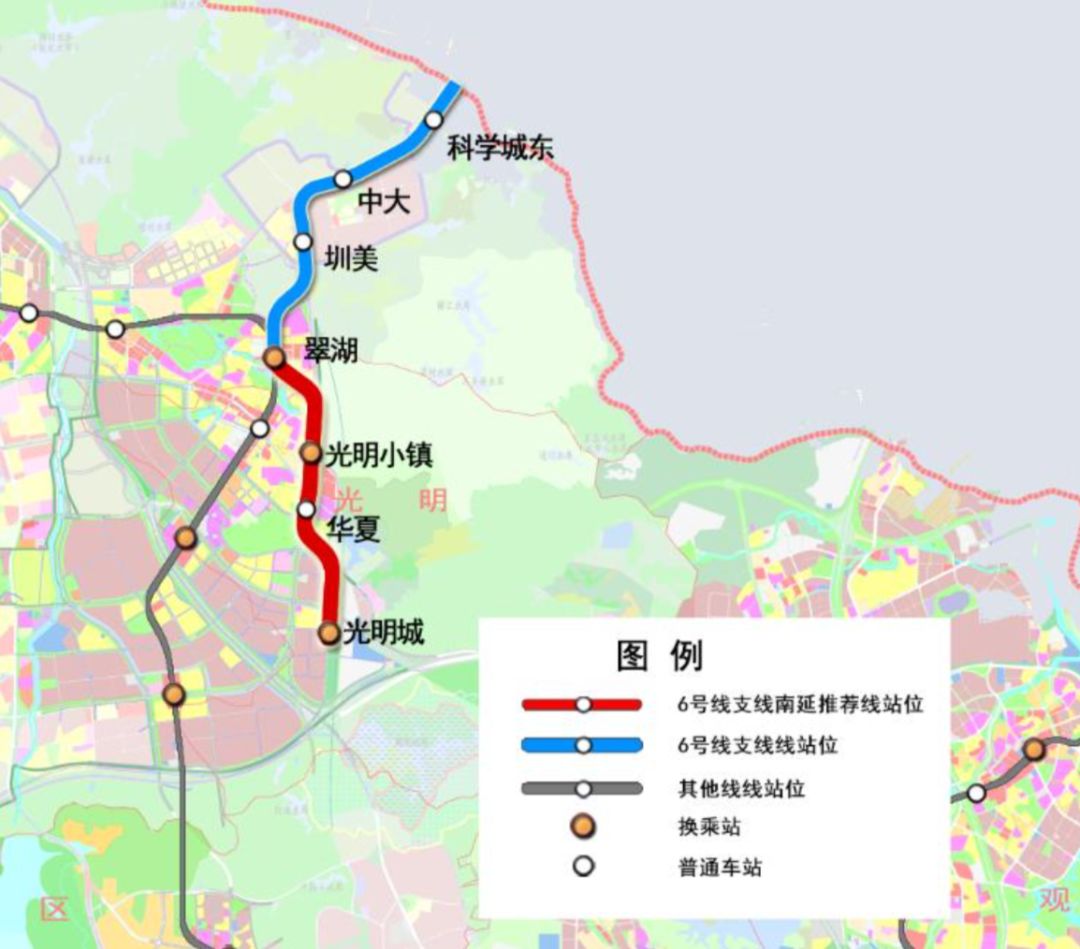 6號線支線是地鐵四期開工的5條線路之一,也是深圳和東莞之間第一條確定直連貫通的地鐵線路。6號線支線南延起于翠湖站南側(cè),向南沿光明大道高架敷設,最終在廣深港高鐵光明城站的站前廣場設置光明城站,并與13號線北延相交。