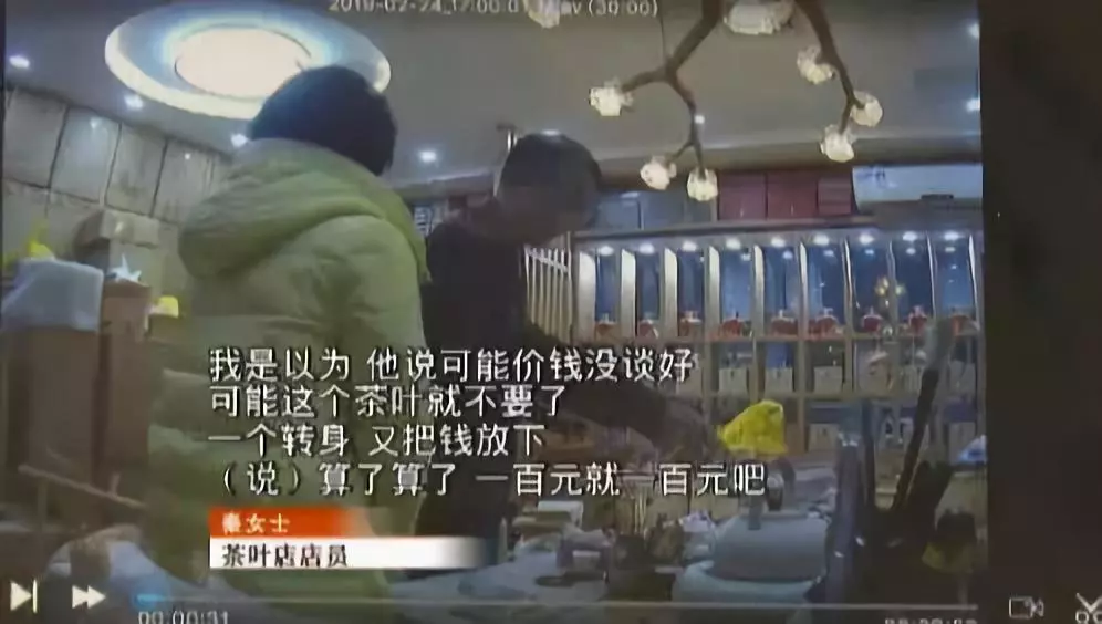 據(jù)小娟回憶,此時顧客讓她到門口拿塑料袋裝茶葉。而秦女士已經(jīng)拿好了茶葉,回到了這位顧客的身邊。秦女士說,這名顧客特意問她,這個茶葉價錢是不是80?她回答不是,然后顧客就說不要了,但是一轉(zhuǎn)身又說100塊就100塊吧。
