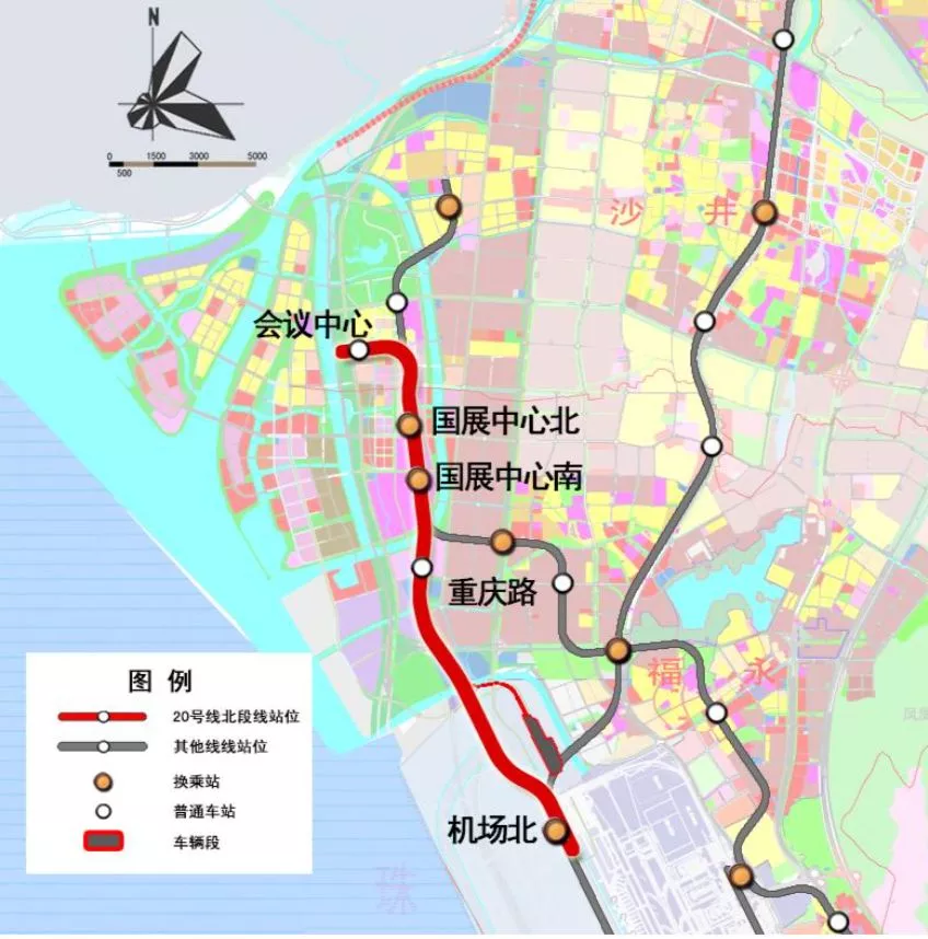 20號線北段起于寶安國際機場規(guī)劃T4航站樓,在規(guī)劃T4航站樓北側,11號線東側設機場北站,與11號線、穗莞深城際線換乘。